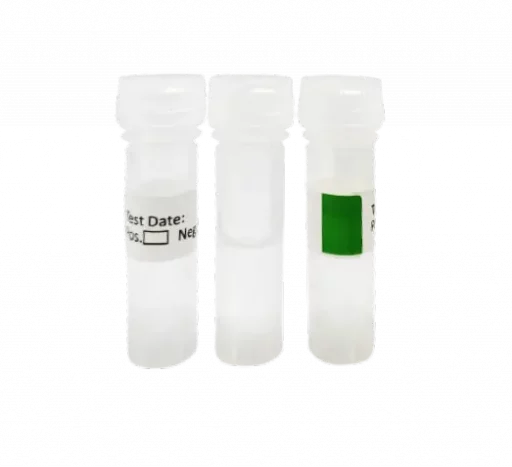 - Then, shake the swap in the green-capped tube that contains the fluid of transparent tube and the solid in green-capped tube.